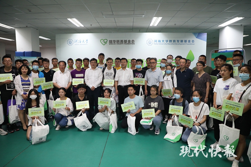 △河海大學(xué)黨委書記唐洪武、校長(zhǎng)徐輝,為新生發(fā)放瑞華助學(xué)金