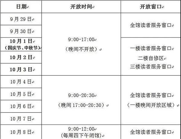 △ 2020年國慶、中秋期間開放安排 來源:金陵圖書館微信公號