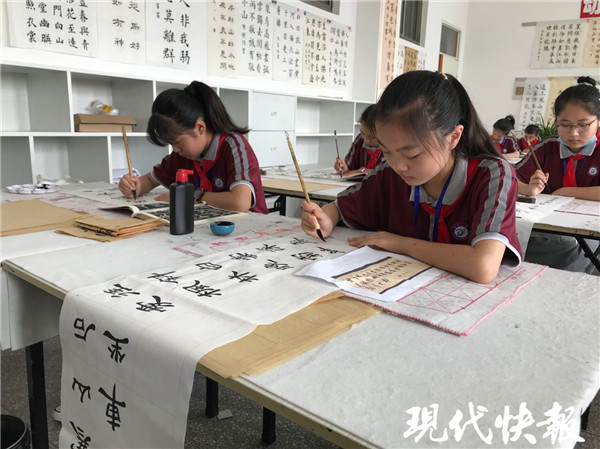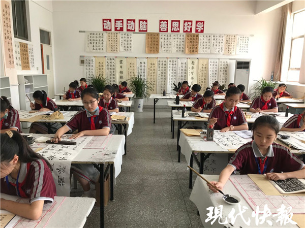 “書法教學(xué)是語文教學(xué)的重要組成部分。我校一直把書法社團(tuán)作為特色社團(tuán)來建設(shè),每年從三年級學(xué)生中挑選出部分精兵強將,充分利用中午寫字課和晚上課后服務(wù)的時間,由專人教學(xué)輔導(dǎo)。”響水縣銀河路小學(xué)教務(wù)處主任嵇建軍說。