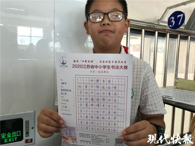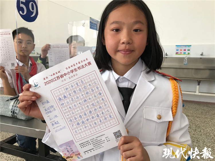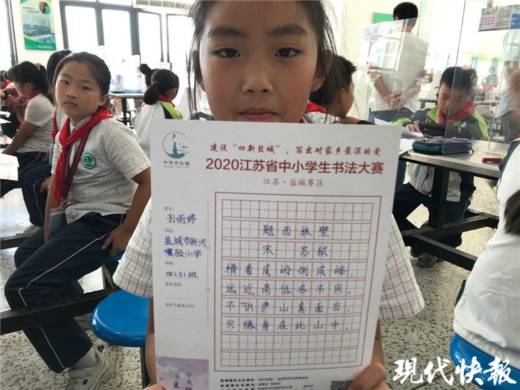 “孩子們抬頭挺胸,端正坐姿,正確握筆,一筆一畫書寫。”鹽城市新河實(shí)驗(yàn)小學(xué)的書法老師家徐萬虎和萬遠(yuǎn)峰、費(fèi)建、蔡紅梅等四位老師穿梭其中,指導(dǎo)孩子們認(rèn)真比賽。“媽媽很支持我,我每天都會(huì)抽時(shí)間練字。”四年級(jí)的學(xué)生孫雨婷雖然才練字1年時(shí)間,但她的字已顯成熟穩(wěn)重。
