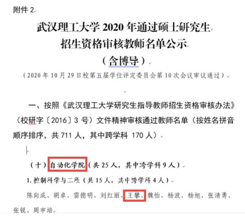 聯(lián)名信寫道,身為關(guān)心校園發(fā)展的熱心武理學(xué)子,我們呼吁永久禁止已故學(xué)子陶崇園導(dǎo)師、武漢理工大學(xué)自動化學(xué)院教師王攀教師的招研資格。2018年3月26日,我校研究生陶崇園從其宿舍樓頂墜樓身亡,此事引起社會熱議。2018年4月8日,我校發(fā)布通報稱,王攀存在與學(xué)生認(rèn)義子關(guān)系等與科研無關(guān)的行為,以及指導(dǎo)學(xué)生升學(xué)就業(yè)過程中方式方法欠妥等情況。據(jù)此調(diào)查結(jié)果,校方停止了王攀的研究生招生資格,對其作出了停職處理。然而,時隔兩年,校方卻一改前態(tài),做出令眾多師生愕然的決定:2020年11月20日,武漢理工大學(xué)研究生院官網(wǎng)發(fā)布的《關(guān)于學(xué)校2020年通過博士碩士研究生招生資格審核的教師名單公示》中,王攀之名赫然在列。