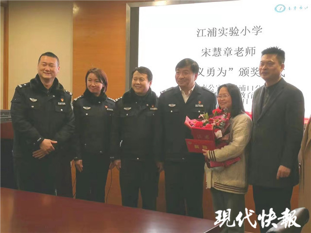 (通訊員 劉昱彤 陳歡 記者 顧元森)3月17日下午,南京市公安局浦口分局政委、浦口區(qū)見義勇為基金會秘書長潘衛(wèi)一行人來到浦口區(qū)江浦實驗小學,為見義勇為老師宋慧章送獎到崗,表彰慰問。浦口區(qū)教育局局長余榮國,區(qū)教育局相關部門及江浦實驗小學領導參加。