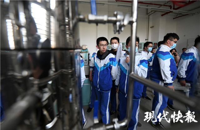 4月8日,45名金陵中學(xué)高一高二年級化學(xué)競賽班的學(xué)生,集體走進南京大學(xué),他們參觀了基礎(chǔ)實驗樓物理化學(xué)實驗室,化工基礎(chǔ)實驗室、天平室等。還走進了南京大學(xué)配位化學(xué)國家重點實驗室、生命分析化學(xué)國家重點實驗室,遇到了活體實驗等難得一見的現(xiàn)場。金陵中學(xué)高二(14)班張羽寒,高一開始參加化學(xué)競賽,并獲得省一等獎。他說平時理論學(xué)習(xí)比較多,這里的實驗室則可以提供很好的條件。