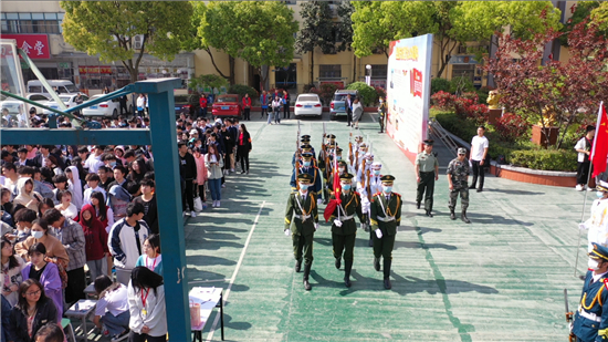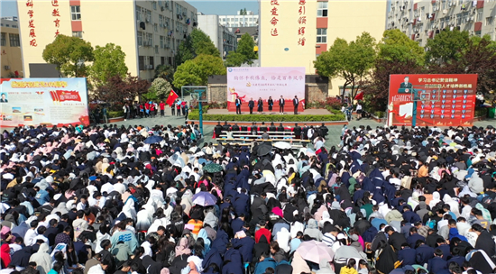 一輪朝陽(yáng),融入黨旗顏色;一抹晨曦,孕育無(wú)限希望。迎著旭日,全體學(xué)生就坐,國(guó)旗儀仗隊(duì)整齊入場(chǎng),升國(guó)旗、奏國(guó)歌,全體師生行注目禮。