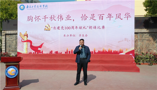 百年滄?;芈曉?,今朝詩(shī)聲衷心頌。4月19日至20日,南京工業(yè)技術(shù)學(xué)校特推出“胸懷千秋偉業(yè),恰是百年風(fēng)華”,為建黨100周年獻(xiàn)禮系列集體朗誦活動(dòng)。