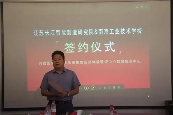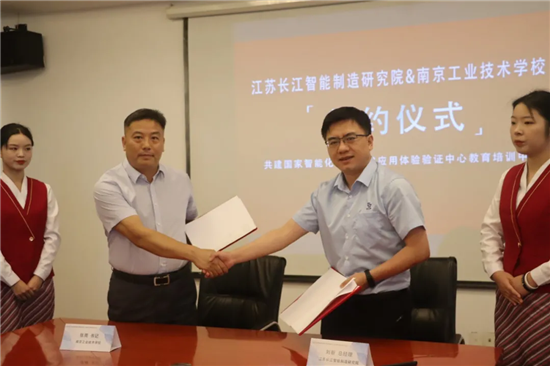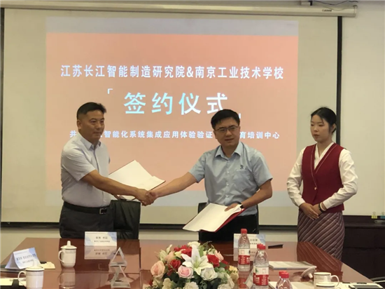 江蘇長(zhǎng)江智能制造研究院與南京工業(yè)技術(shù)學(xué)校共建國(guó)家智能化系統(tǒng)集成應(yīng)用體驗(yàn)驗(yàn)證中心教育培訓(xùn)中心的簽約儀式,于6月23日在南京工業(yè)技術(shù)學(xué)校圓滿落幕。