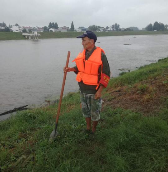 三界涵頭村近80歲高齡的老黨員魏道福曾任村長10多年,有著豐富的防汛經(jīng)驗,他不顧老伴的反對主動請纓前往圩堤進行24小時值守。每到他值守時,他總是早早地來接上一班巡查人員的班,按照要求每兩小時將圩堤仔仔細細地巡個遍并做好記錄,確保沒有一點問題他才安心,一天下來,來來回回走了不下十公里。