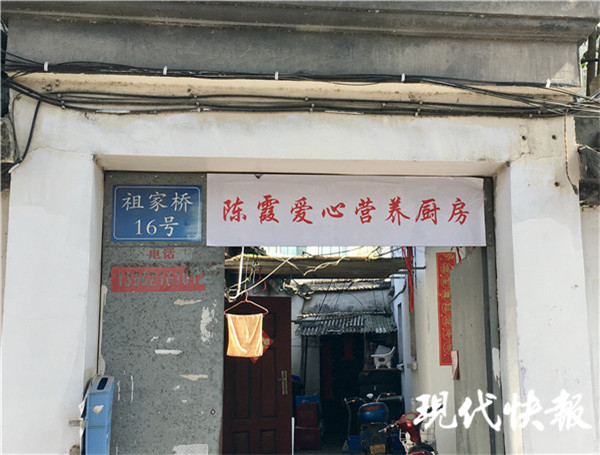 3月4日上午9點(diǎn),現(xiàn)代快報(bào)記者來到了這家位于蘇州市姑蘇區(qū)的祖家橋16號(hào)的愛心廚房,愛心廚房門額上掛著一張與眾不同的橫幅——陳霞愛心營(yíng)養(yǎng)廚房。