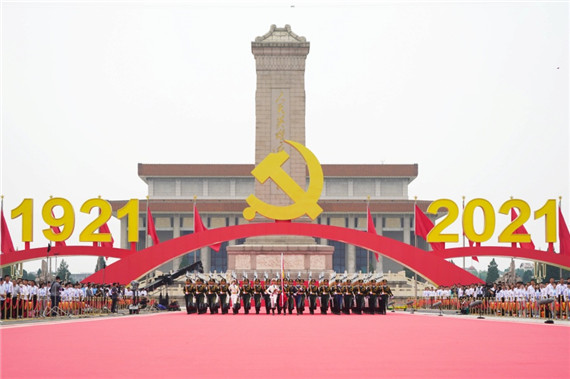 56門禮炮,鳴放100響,致敬黨的百年光輝歷程。