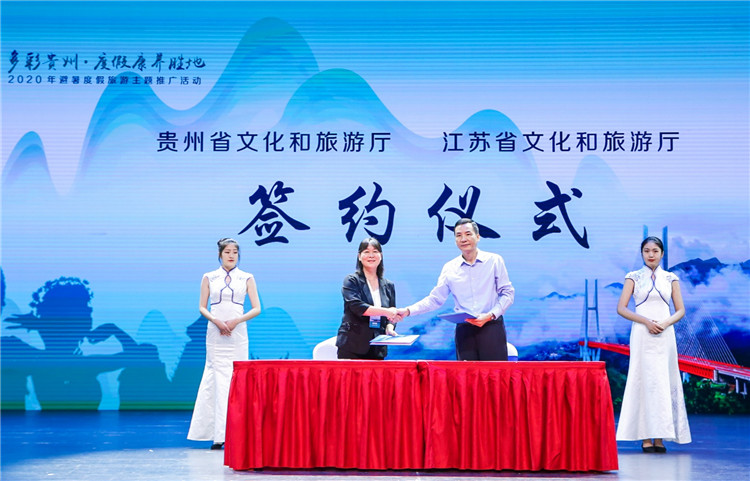活動現(xiàn)場,江蘇省文化和旅游廳和貴州文化和旅游廳相關(guān)領(lǐng)導共同簽署了《關(guān)于共同推動文化旅游發(fā)展的合作備忘錄》。2020年,蘇黔兩省將就客源互輸、產(chǎn)業(yè)投資、交通接駁、文旅交流等方面繼續(xù)深化合作、謀求共贏。