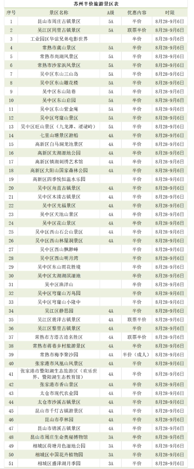 蘇州51家A級景區(qū)門票半價優(yōu)惠!