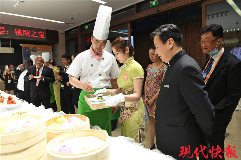 在第二屆大運河文化旅游博覽會舉辦之際,江蘇省文旅廳、江蘇省外事辦公室聯(lián)合邀請了近百名來自28個國家(地區(qū))的38家機(jī)構(gòu)外國駐華使節(jié)、境外駐華文化旅游辦事處代表和外國商務(wù)代表等,到江蘇參加國際友人“水韻江蘇運河行”活動。9月4日,他們在南京博物院與江蘇的淮揚美食、非遺文化來了一場完美邂逅。