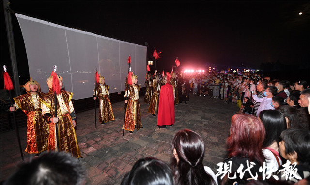 這個國慶長假,南京“夜間模式”被喚醒,給游客出行增添了許多全新的選擇。夜幕降臨,南京城墻解放門景區(qū)的“城墻奇妙夜”正式開啟,登上七彩燈光點(diǎn)亮的城墻階梯,每走一步都能感受光影流轉(zhuǎn),燈光與夜色交融,眼前一切如同一幅流光溢彩、科技感十足的山水畫。“天上掉下個林妹妹似一朵輕云剛出岫 ……”晚上,沉浸式實(shí)景戲曲演出“金陵尋夢·夜瞻園”在瞻園驚艷上演。游客們腳步不停,跟著演員移步換景,仿佛置身于360度實(shí)景還原的《紅樓夢》中。晚上8點(diǎn),江蘇省美術(shù)館新館的外墻化身幕布,通過光影,將《奔馬圖》《芙蓉國里盡朝暉》等館藏精品一一投射上墻。許多市民和游客都停下腳步,舉起手機(jī)拍下這美輪美奐的光影秀。