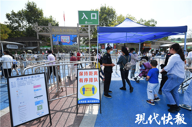 “請游客佩戴口罩,保持距離,有序入園 ……”紅山森林動物園門口的喇叭里循環(huán)播放著溫馨提示。測量體溫、出示蘇康碼后,方可入園。想進(jìn)入中山陵園游覽,需要經(jīng)過兩道“關(guān)卡”。在第一道關(guān)卡,游客需按照流程指示預(yù)約門票,隨后在第二道“關(guān)卡”有序排隊(duì),驗(yàn)票通過后,才能進(jìn)入陵園內(nèi)參觀。玄武湖公園外,也有不少游客聚在門前,掃描二維碼,預(yù)約入園。
