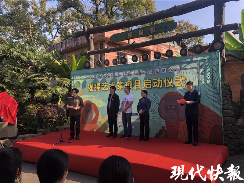 欣賞猩猩的藝術(shù)畫展,在樂申的銅雕前懷念傳奇“明猩”……11月14日,是2020國際猩猩關(guān)愛周的最后一天,紅山森林動物園舉辦了以“保護生物多樣性——為了一個健康的地球”為主題的游園會活動,希望通過藝術(shù)欣賞讓更多公眾參與到認識、了解、保護猩猩的行列中來。當天,“明猩”樂申的銅雕在園內(nèi)落成揭牌。