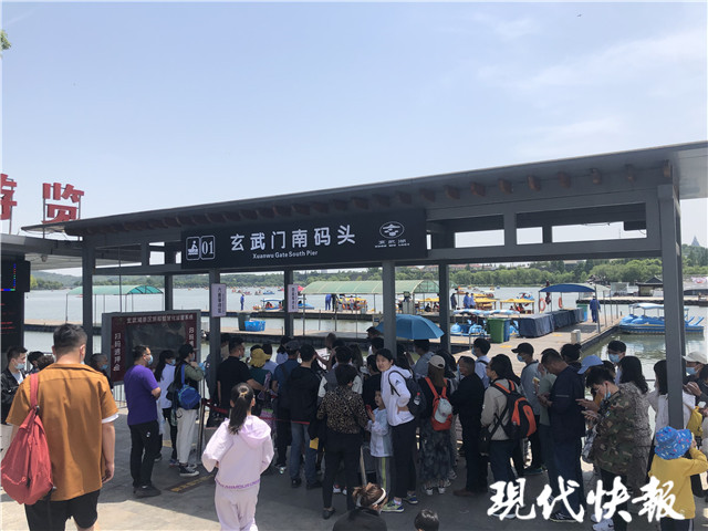 △玄武湖游船碼頭排隊(duì)的游客