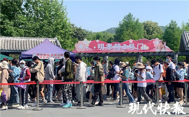 上午10點(diǎn)左右,現(xiàn)代快報(bào)記者來到南京總統(tǒng)府景區(qū)探訪,熱情的游客也已經(jīng)早早地排起了長(zhǎng)隊(duì)。