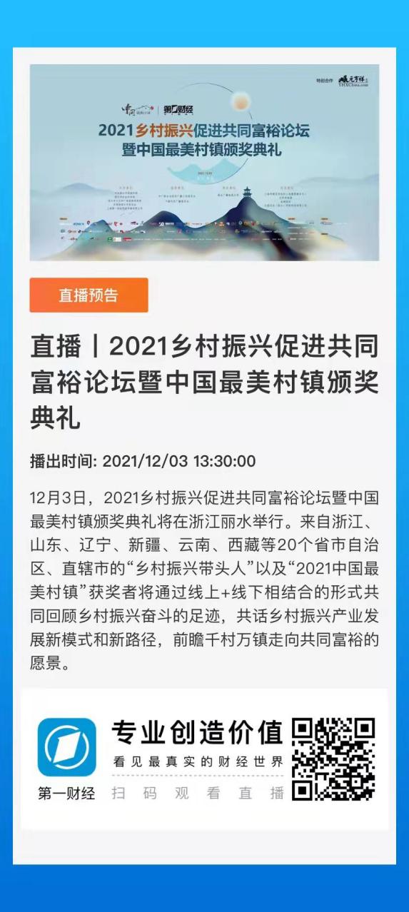 創(chuàng)建最美村鎮(zhèn)典范,擘畫共同富裕愿景。12月3日13時至17時,期待您的參與和關(guān)注。