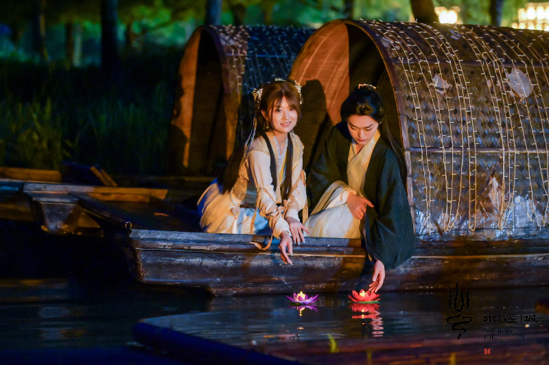 舞臺上精彩無限,景區(qū)內(nèi)更是驚喜不斷,各路身著古裝的“俠客”現(xiàn)身——景區(qū)邀請50名來自南京知名漢服社的成員們扮作俠客英豪,漢服游園活動將為現(xiàn)場游客帶去一場視覺盛宴;“江湖俠客行·夜跑水慢城”熒光夜跑活動中,“江湖兒女”歡樂起跑,樂活夏夜;景區(qū)打造的“蓮花江湖”“陵風(fēng)渡口”“龍門客?!钡冉?jīng)典武俠影視劇場景中,NPC與游客互動游戲,笑聲不斷……夜色下的高淳固城湖水慢城景區(qū)變身逍遙蓮花鎮(zhèn),帶領(lǐng)現(xiàn)場游客沉浸式體驗(yàn)“江湖武俠夢”。
