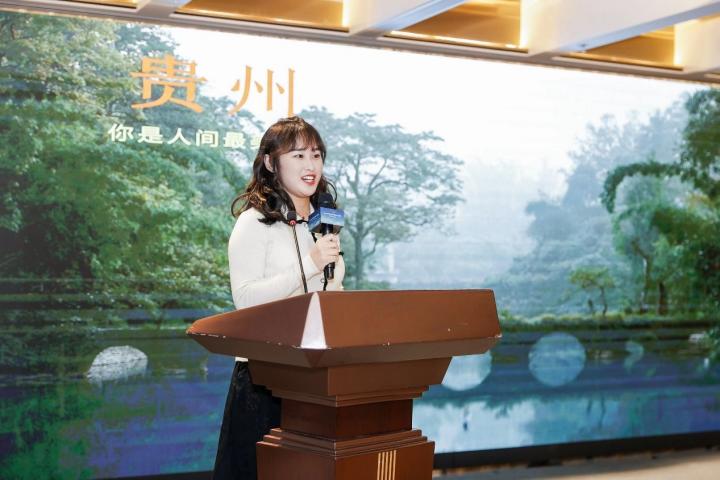 掉落人間的綠寶石荔波小七孔、百年古建甲秀樓、鮮到心里的凱里酸湯牛肉火鍋、酸甜可口的刺梨汁等貴州元素為大眾所熟知,但來自南京的旅游達(dá)人笑妍日記給活動(dòng)現(xiàn)場的嘉賓以新的打卡視角。她曾多次深入貴州旅行,在新媒體平臺(tái)宣傳推廣的貴州風(fēng)光人文等引發(fā)數(shù)萬轉(zhuǎn)發(fā)和數(shù)百萬關(guān)注,生動(dòng)活潑地將貴州的山奇水秀,多元民族文化展示給現(xiàn)場的嘉賓。