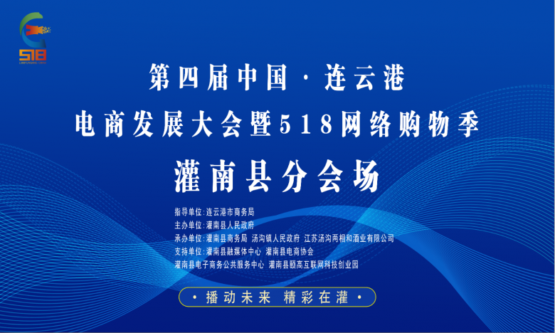 第四屆中國·連云港電商發(fā)展大會暨518網(wǎng)絡(luò)購物季——灌南分會場,設(shè)立在湯溝酒生態(tài)文化旅游區(qū),本次活動由灌南縣人民政府主辦,灌南縣商務(wù)局、湯溝鎮(zhèn)人民政府、江蘇兩相和酒業(yè)有限公司承辦,灌南縣融媒體中心、灌南縣電商協(xié)會、灌南縣電子商務(wù)公共服務(wù)中心、灌南縣頤高互聯(lián)網(wǎng)科技創(chuàng)業(yè)園等多單位支持。