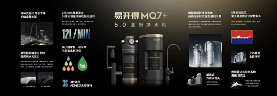 基于對行業(yè)趨勢與用戶需求痛點(diǎn)的敏銳洞察,易開得推出MQ7+全廚凈水器,以航母級凈水科技為全廚凈水生活加碼,不斷推動凈水市場向前。