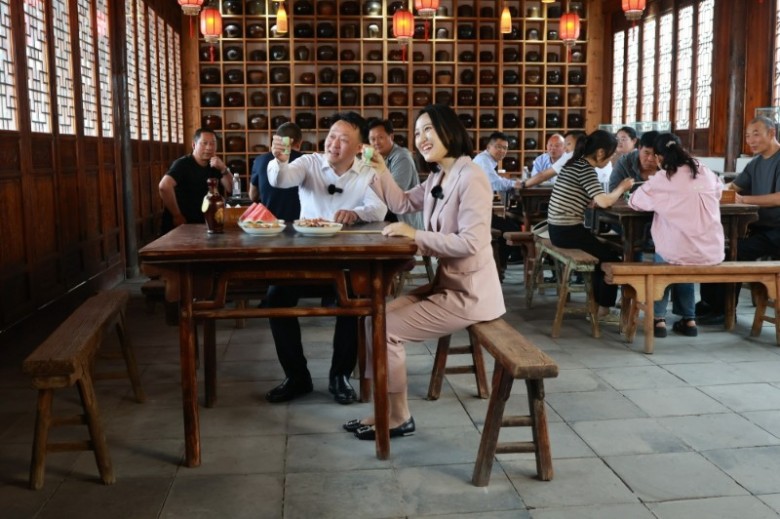 直播活動(dòng)中,縣長蘇衛(wèi)哲和主持人向廣大網(wǎng)友介紹了湯溝的“香泉井”、“天啟酒窖”、湯溝釀酒基地的手工班窖池群,讓網(wǎng)友們深度了解湯溝酒的歷史沿革、文化底蘊(yùn)和釀造工藝。