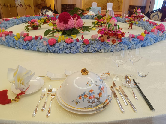 中國-中亞峰會《盛世榴芳》歡迎晚宴現(xiàn)場擺臺實景