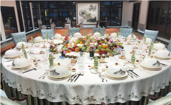 2017年金 磚 國 家 領(lǐng) 導人廈門 峰 會《祥云水墨·墨問》系列產(chǎn)品在筼筜書院中俄雙邊宴會時場景