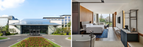 從左至右:徐州喜來登酒店外觀圖、行政大床房