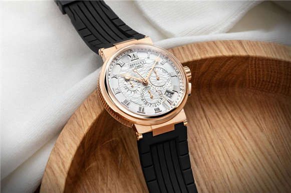 Marine航海系列5527計(jì)時(shí)碼表18K玫瑰金表殼色澤柔和,搭配鍍銀金質(zhì)表盤形成鮮明對(duì)比,獨(dú)具層次感的金銀撞色演繹優(yōu)雅與動(dòng)感,盡情洋溢之于浩瀚海洋的激越豪情。表盤上飾以手工璣鏤刻花波浪飾紋圖案則呼應(yīng)了這一腕表系列的起源。該款時(shí)計(jì)還提供白金表殼搭配藍(lán)色金質(zhì)表盤和鈦金屬款式供選擇。此外,寶璣還提供真皮表帶及橡膠表帶可替換。(陳克雙)