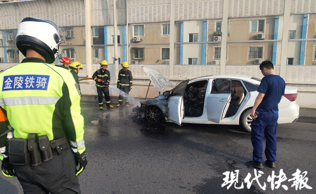 南京應(yīng)天大街高架轎車自燃 所幸撲救及時(shí)無人員傷亡