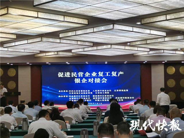 (記者 潘榮 文/攝) 為促進(jìn)民營(yíng)經(jīng)濟(jì)復(fù)工復(fù)產(chǎn),扎實(shí)做好“六穩(wěn)”工作,落實(shí)“六保”任務(wù)。7月1日,江蘇省委統(tǒng)戰(zhàn)部、省工商聯(lián)聯(lián)合人民銀行南京分行、江蘇銀保監(jiān)局、省地方金融監(jiān)督管理局舉辦促進(jìn)民營(yíng)企業(yè)復(fù)工復(fù)產(chǎn)銀企對(duì)接會(huì)。現(xiàn)代快報(bào)記者獲悉,對(duì)接會(huì)上省工商聯(lián)與多家金融機(jī)構(gòu)聯(lián)動(dòng),現(xiàn)場(chǎng)簽約授信額度259.81億元。
