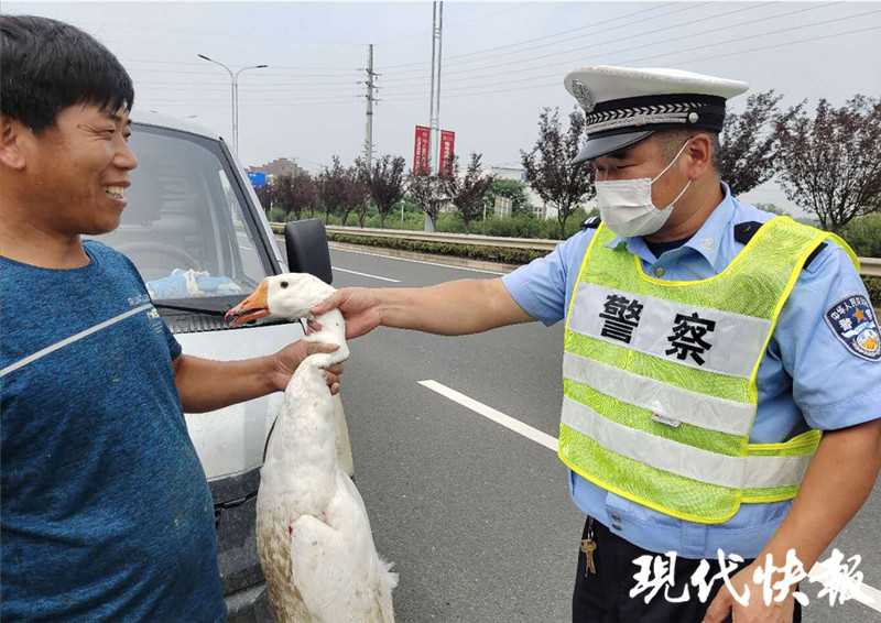 大白鵝“出逃”警車追貨車5公里送還