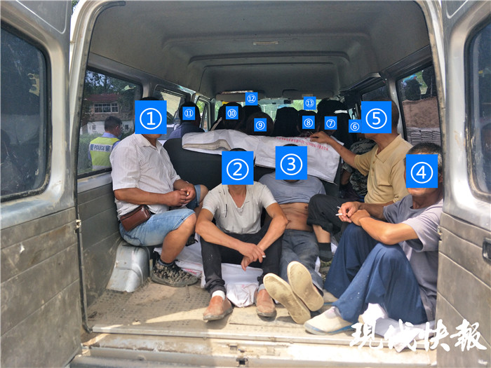 (通訊員 陳宇 張剛 記者 孫旭暉)7月1日下午,宿遷市泗陽縣警方查到一輛小型面包車,民警發(fā)現(xiàn),這輛車?yán)锶麧M了人。“13個(gè)成年人擠在一起,超員116%。”民警介紹,這輛車上的13個(gè)人都是在同一工地干活的工友,面包車核載6人,屬于嚴(yán)重超員。