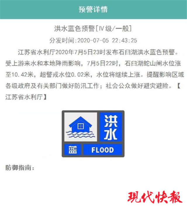 (記者 盧河燕)7月5日23時(shí),江蘇省水利廳發(fā)布石臼湖洪水藍(lán)色預(yù)警。