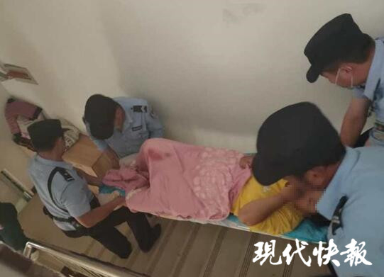 △民警把孕婦抬下樓