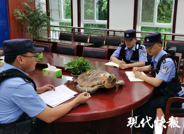 2019年3月,連云港市公安局云臺山景區(qū)分局花果山景區(qū)派出所民警在日常巡查的時候,發(fā)現(xiàn)轄區(qū)中有一間店鋪存在使用海龜標(biāo)本祈福牟利的行為,隨后民警委托了南京森林公安進(jìn)行了標(biāo)本物種的鑒定,鑒定發(fā)現(xiàn)標(biāo)本是綠海龜,屬于國家二級保護動物。