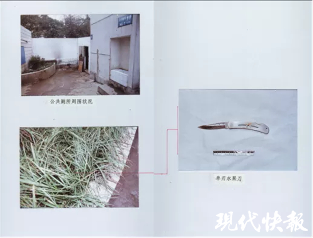 △ 17年前的案發(fā)現(xiàn)場(chǎng)。兇手行兇用的水果刀。行兇后,兇手將刀扔在草叢中