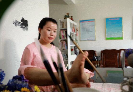 這一突變,讓原本性格活潑的紀蘇原,一下子陷入了絕望。好在,來自家人和病友無微不至的關心照顧,讓她很快重拾笑容,同時也立下目標:即使沒了雙臂,也要活出非凡的人生。紀蘇原說:“去嘗試著用腳代替手,一開始腳總是不聽使喚,所以經(jīng)常磨破、磨腫。通過一段時間練習,我終于可以用腳使用筷子,能夾到餃子并且送到媽媽的嘴里,那個時候媽媽很欣慰地笑了。”