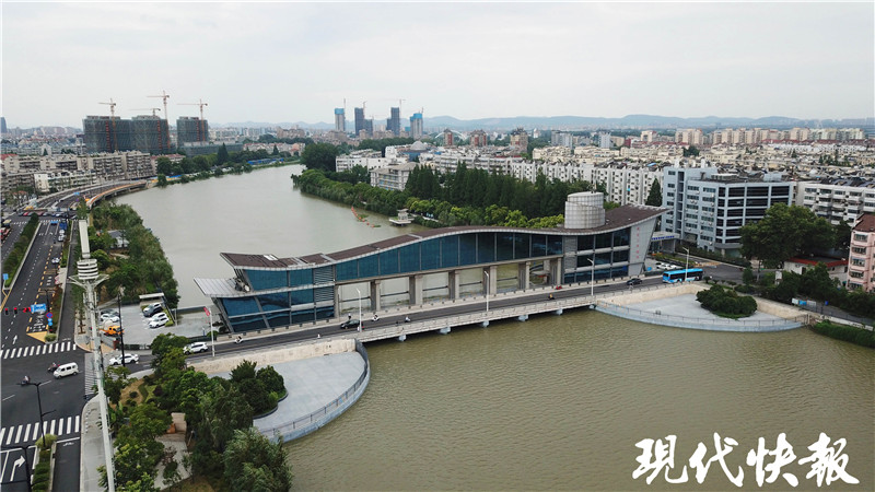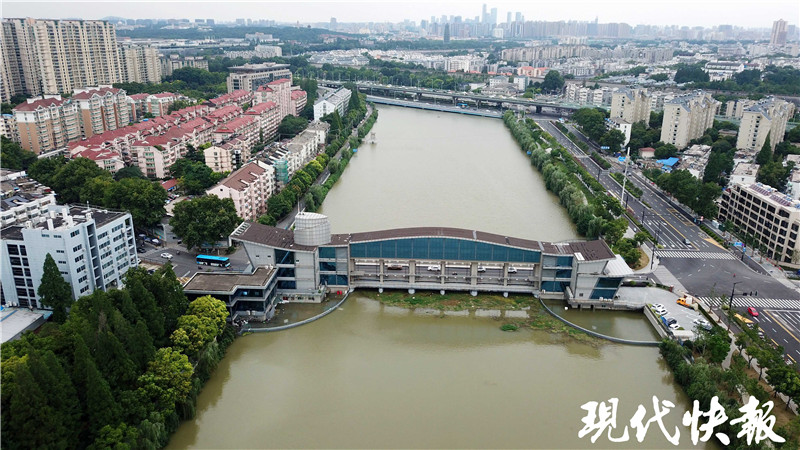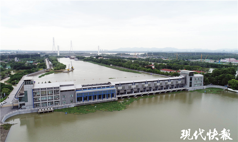 7月12日,現(xiàn)代快報(bào)記者來(lái)到秦淮新河水利樞紐,這里位于秦淮新河入江口處,離長(zhǎng)江大約三四公里。一座閘站一體的大型建筑物,呈一字型橫跨于秦淮新河。