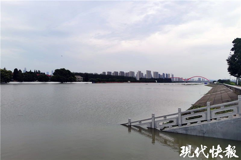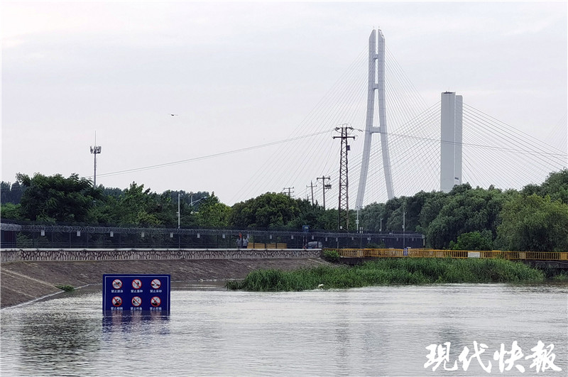 記者在秦淮新河閘下游看到,水面距離堤頂還有約2米距離。“人眼看到的水下,原來(lái)還有坡道和平臺(tái),現(xiàn)在全淹了。”薛海朋說(shuō),歷史上閘下的最高水位達(dá)到10.58米。今年入梅前,閘下長(zhǎng)江水位維持在5-6米,一個(gè)月來(lái)漲了4米多。