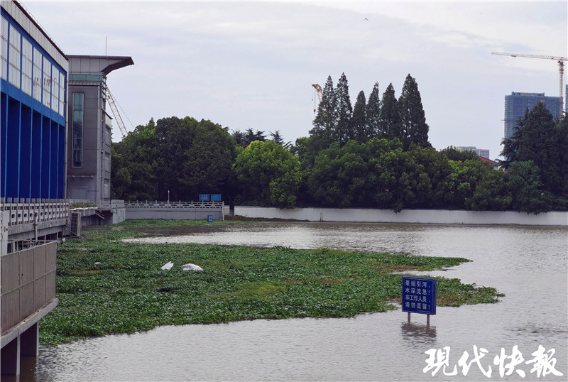 隨后,記者來(lái)到秦淮新河閘內(nèi)側(cè),河水同樣淹沒(méi)了大部分護(hù)坡,靠近閘的地方還漂浮了許多綠色的水生植物,比如水葫蘆。這些植物是從秦淮河上游飄過(guò)來(lái)的,為什么不進(jìn)行打撈?據(jù)了解,由于秦淮河水位不斷上漲,為緩解城市內(nèi)澇,7月7日起開啟秦淮新河泵站,站內(nèi)的5臺(tái)臥式軸流泵機(jī)組全部打開,排澇流量為50m³/s。“因此,即便水面看上去很平靜,水下正在將流域澇水向外排,而這時(shí)打撈雜草是非常危險(xiǎn)的。”薛海朋說(shuō)。