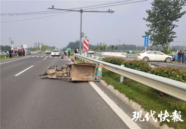 民警告訴現(xiàn)代快報記者,老人騎的電動三輪車,車頭和車身已經(jīng)分離,兩位老人倒在不遠的路口,轎車停在車道一旁,轎車車頭保險杠、引擎蓋等多處有損壞。
