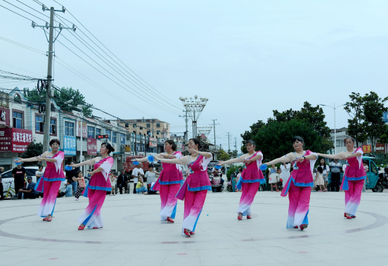 祖國富強,人民幸福?;春咏∩黻牭摹痘鸹鸬闹袊鸹鸬臅r代》,表達出舞友們對祖國的熱愛,振奮了每個人的精神。界牌健身隊的《太湖美》,舞出他們對幸福生活的熱愛。隨著悠揚的舞曲響起,各方陣隊員一招一式整齊劃一,呈現(xiàn)出了廣場舞動作的力與美,展現(xiàn)了界牌鎮(zhèn)新時代農民的精神面貌,她們在運動中收獲健康、在健康中享受快樂。在陶醉自身的同時,也陶冶了別人,感染著過往的群眾,構成了一幅幅鮮活、和諧的新農村人文風景畫。