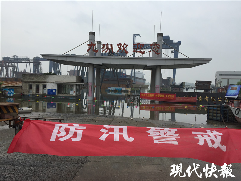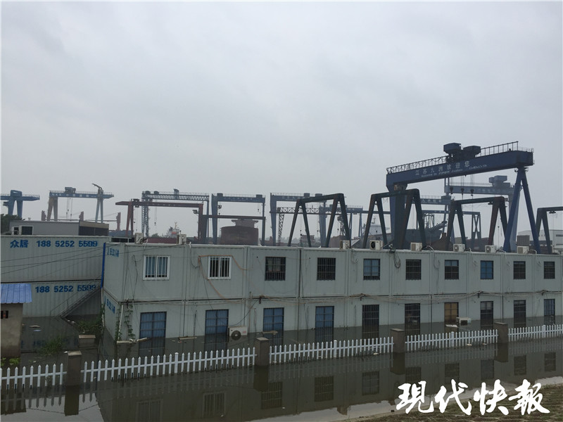 △江水已經(jīng)淹進(jìn)揚(yáng)州部分船廠廠區(qū)
