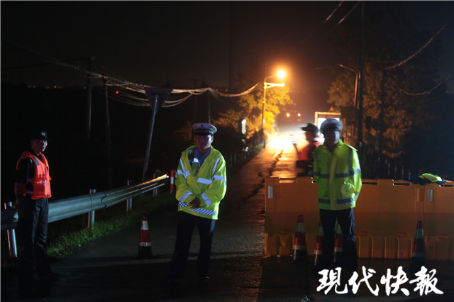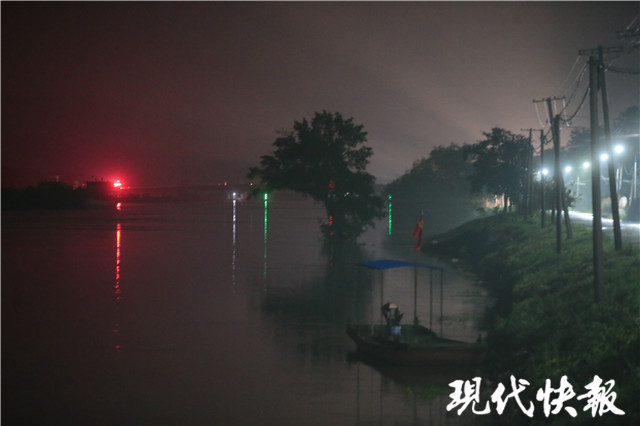 20日晚20點(diǎn),現(xiàn)代快報(bào)記者在高淳區(qū)陽(yáng)江鎮(zhèn)小花村看到,在夜幕下隔岸相望,勝利圩方向已一片漆黑。原本可由小花村通向勝利圩的大橋已被擺上路障,附近執(zhí)勤的民警告訴記者,受汛情影響,從陽(yáng)江鎮(zhèn)通向勝利圩的道路與橋梁均暫時(shí)無(wú)法通行。