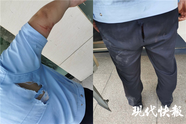 △救人的輔警吳俊衣服都被磨破
