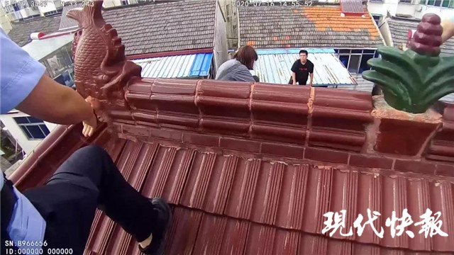 由于擔心女孩的安全,民警兵分兩路,有人在前方負責吸引女孩注意力,有人繞過女孩的視線從屋頂背后爬了上來。據出警民警韓慶邦介紹,由于擔心刺激女孩,他們接近的速度并不快。直到發(fā)現女孩對他們的接近沒有太大反應后,他們加快速度想盡快控制女孩。此時吳俊慢慢靠近女孩,一把抱住了女孩,但由于瓦片太滑,吳俊和女孩都倒在了屋頂上,幸虧吳俊及時穩(wěn)住了身體,兩人才沒有滑下去。