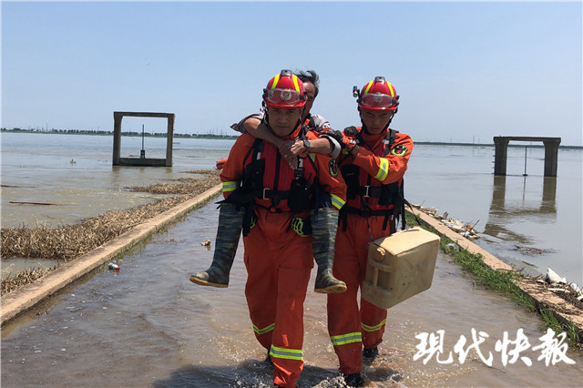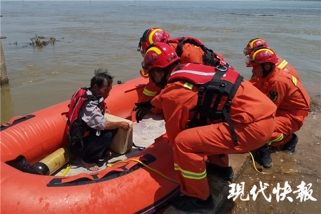 沖鋒舟到達(dá)了被困者的位置后,消防員立即安慰被困人員的緊張情緒,待沖鋒舟調(diào)整好位置、船體穩(wěn)定后,消防員成功將被困人員救到船內(nèi),并為其穿上了救生衣。經(jīng)過消防人員約1個(gè)小時(shí)的緊張救援,被困人員成功獲救。由于被困人員腿腳行動(dòng)不便,消防員又將其背到岸上安全地帶。